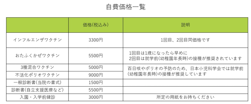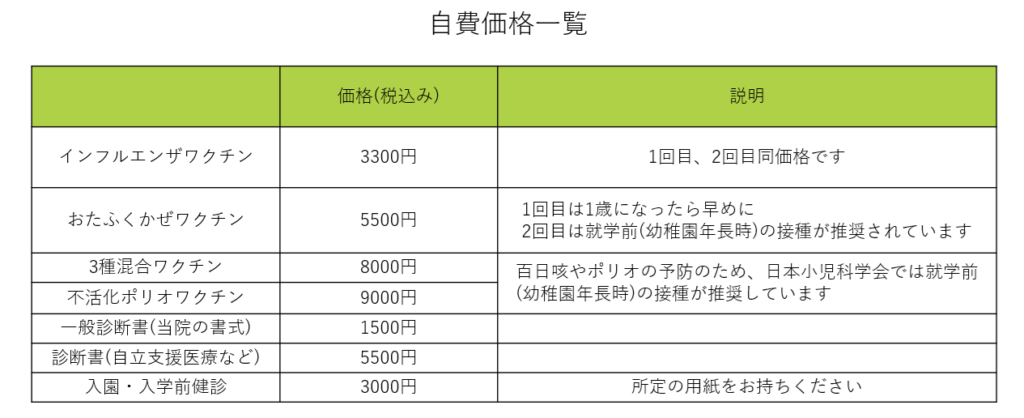 自費価格一覧